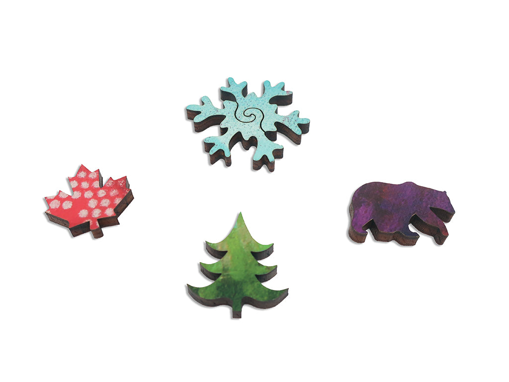 Like all our puzzles, laser-cut from 1/4" thick wood. Packaged in our standard pine wood box. Made in USA.