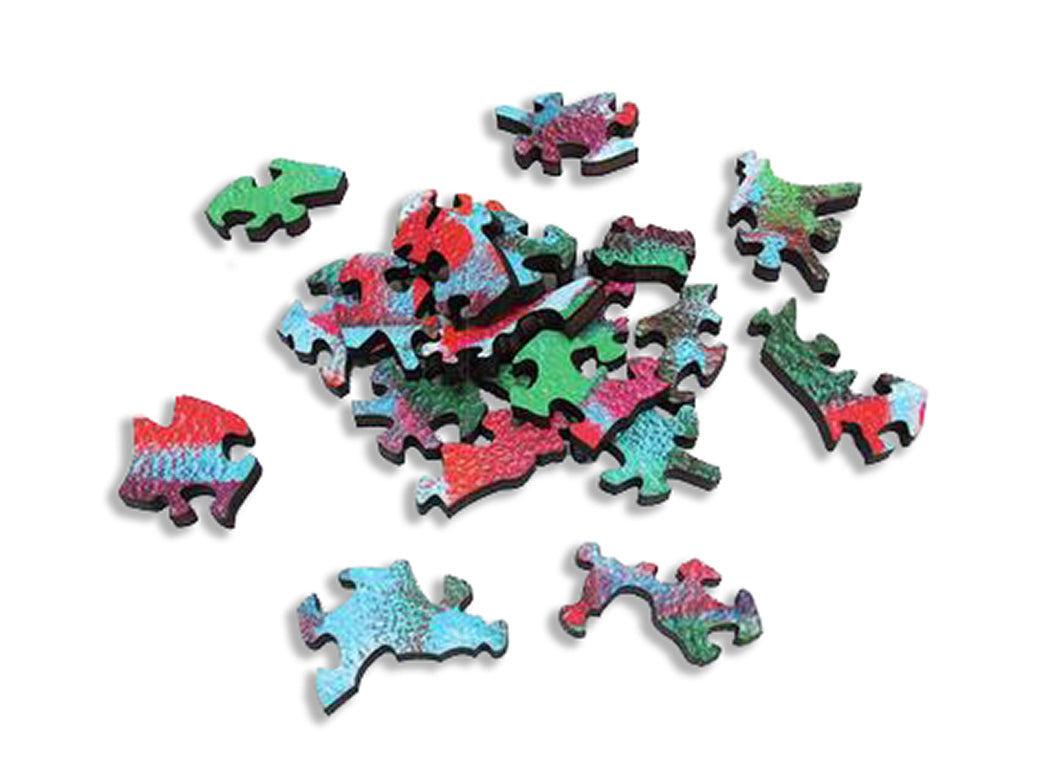 Like all our puzzles, laser-cut from 1/4" thick wood.