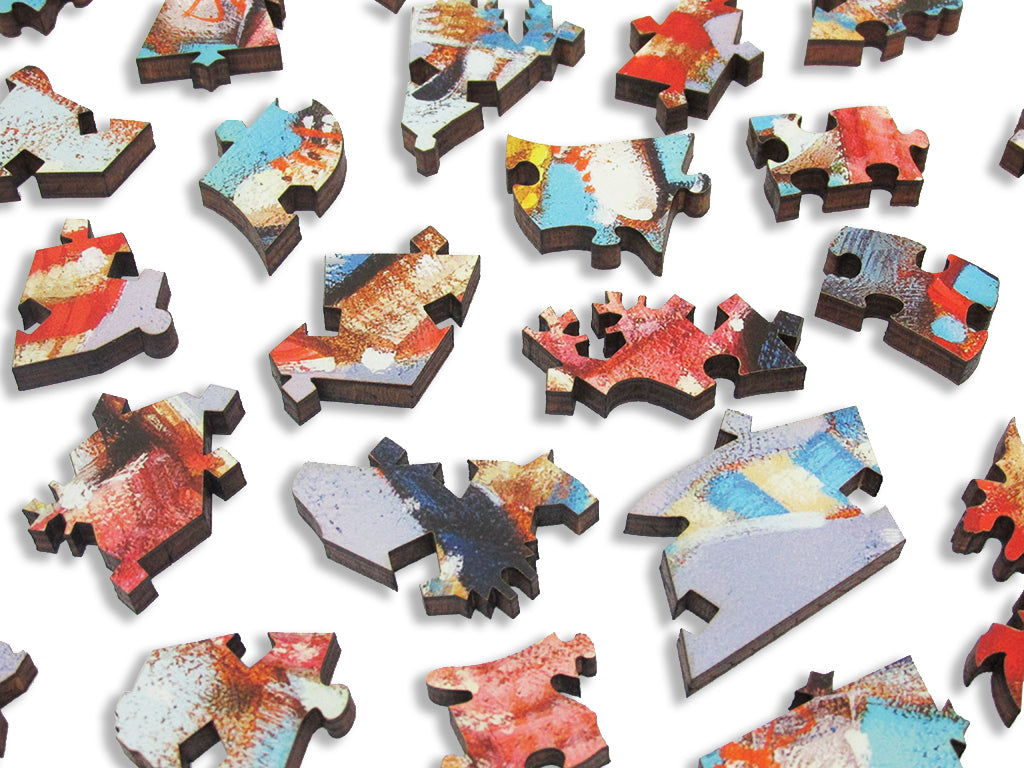 Like all our puzzles, laser-cut from 1/4" thick wood. Packaged in our standard pine wood box. Made in USA.