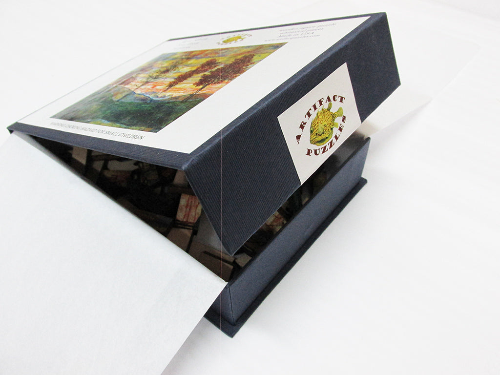 Like all our puzzles, this wooden jigsaw puzzle is laser-cut from 1/4" thick wood. Packaged in our small blue box with magnetic clasp. Made in USA.