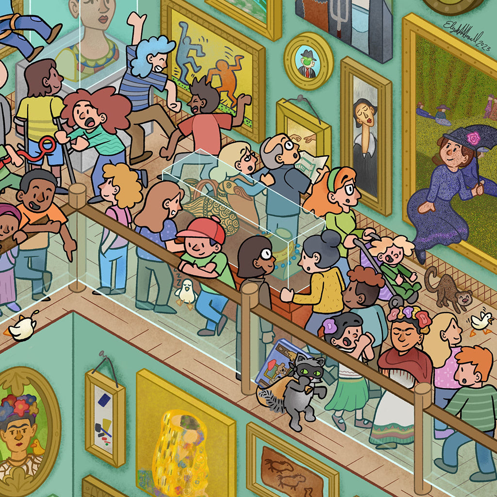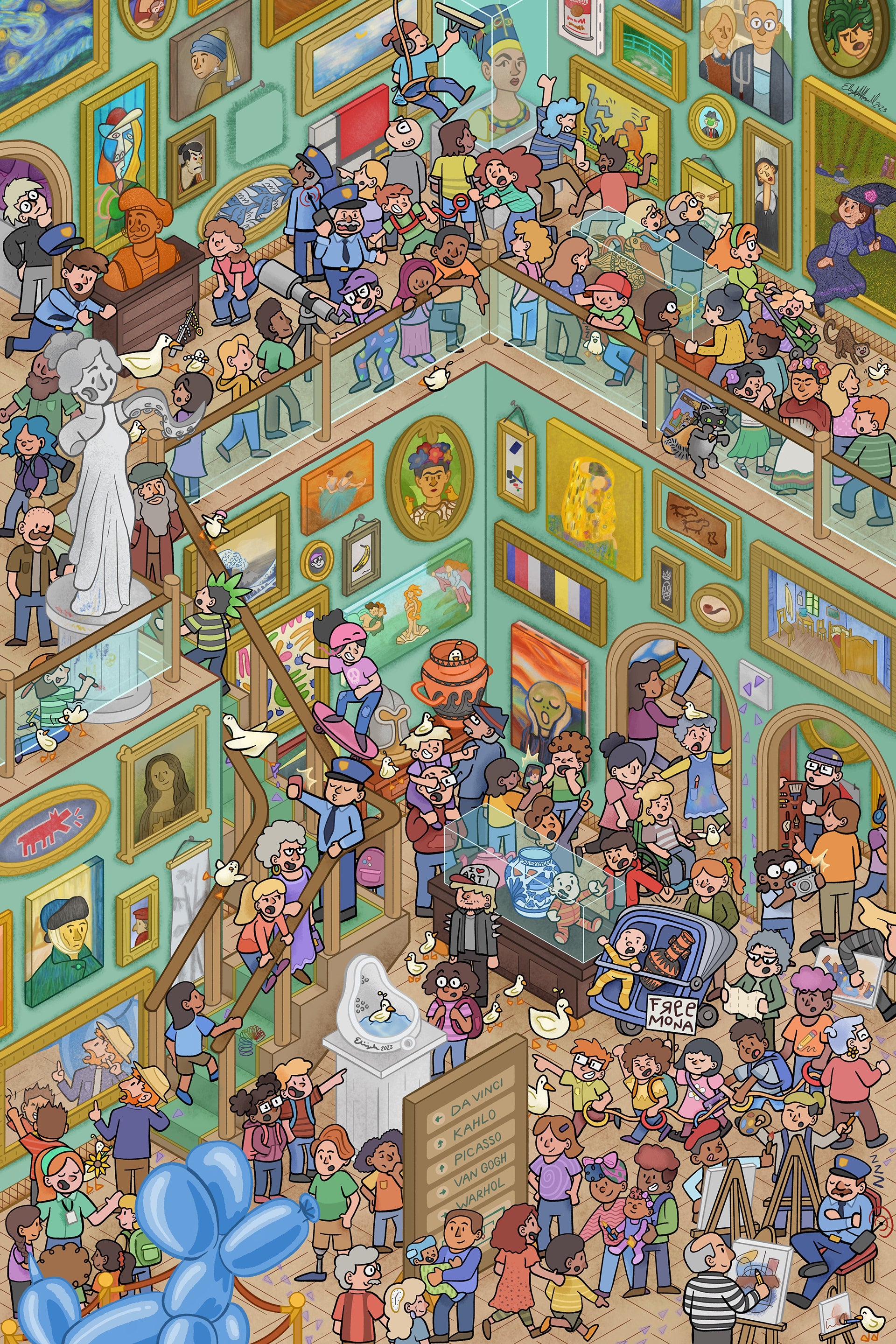 Can you spot all 51 of the famous artwork and artists? And find the thief?  Legend on our blog.