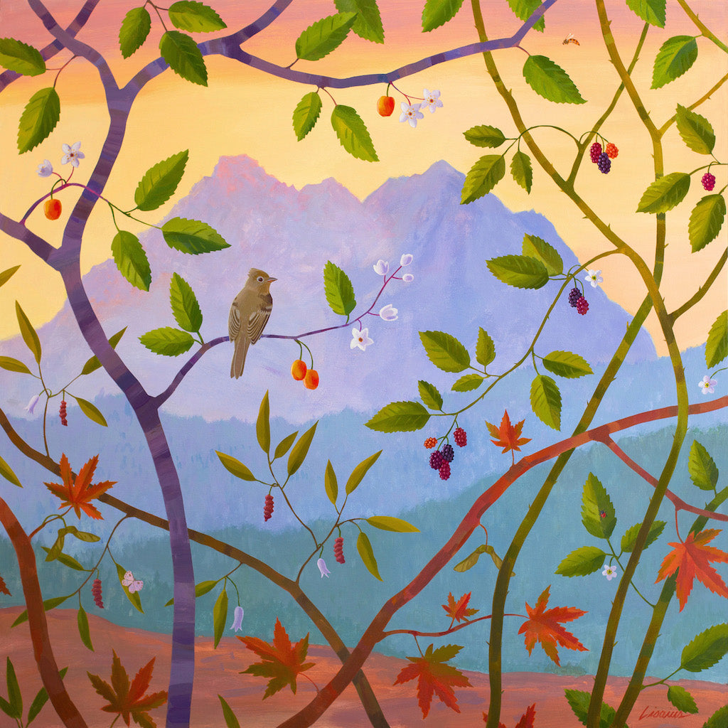 This delightful 217 piece wooden jigsaw puzzle features an uplifting landscape painting by Seattle artist Fred Lisaius.
