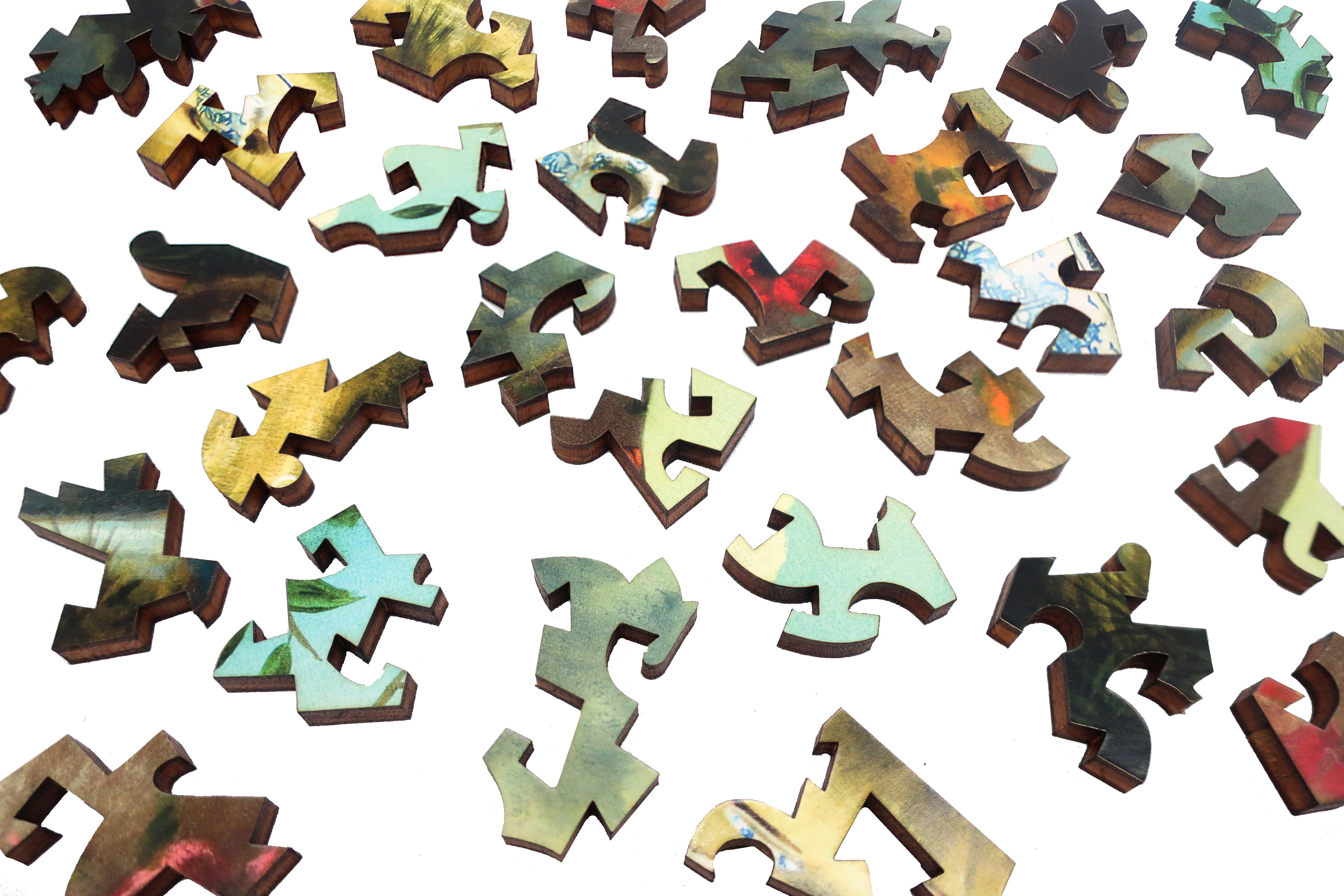 Review: This was my first Artifact puzzle, having been a devotee of a wooden-puzzle competitor for two years. I'm impressed! This puzzle has its easy moments and its difficult ones. Between the picture itself and the delightfully whimsical whimsies, it oozes charm. The irregular, beautiful side borders and the themed top one up the challenge and enchant. Artifact, please do not show the border on the website as it's not shown on the box and this would increase the fun and the difficulty. I immensely enjoyed every minute of this puzzling adventure, smiling all along the way. The tones and the deeply saturated colors produce a gorgeous end result. This just might be my favorite puzzle. Give it a try. It took me a bit over 6 hours to complete.