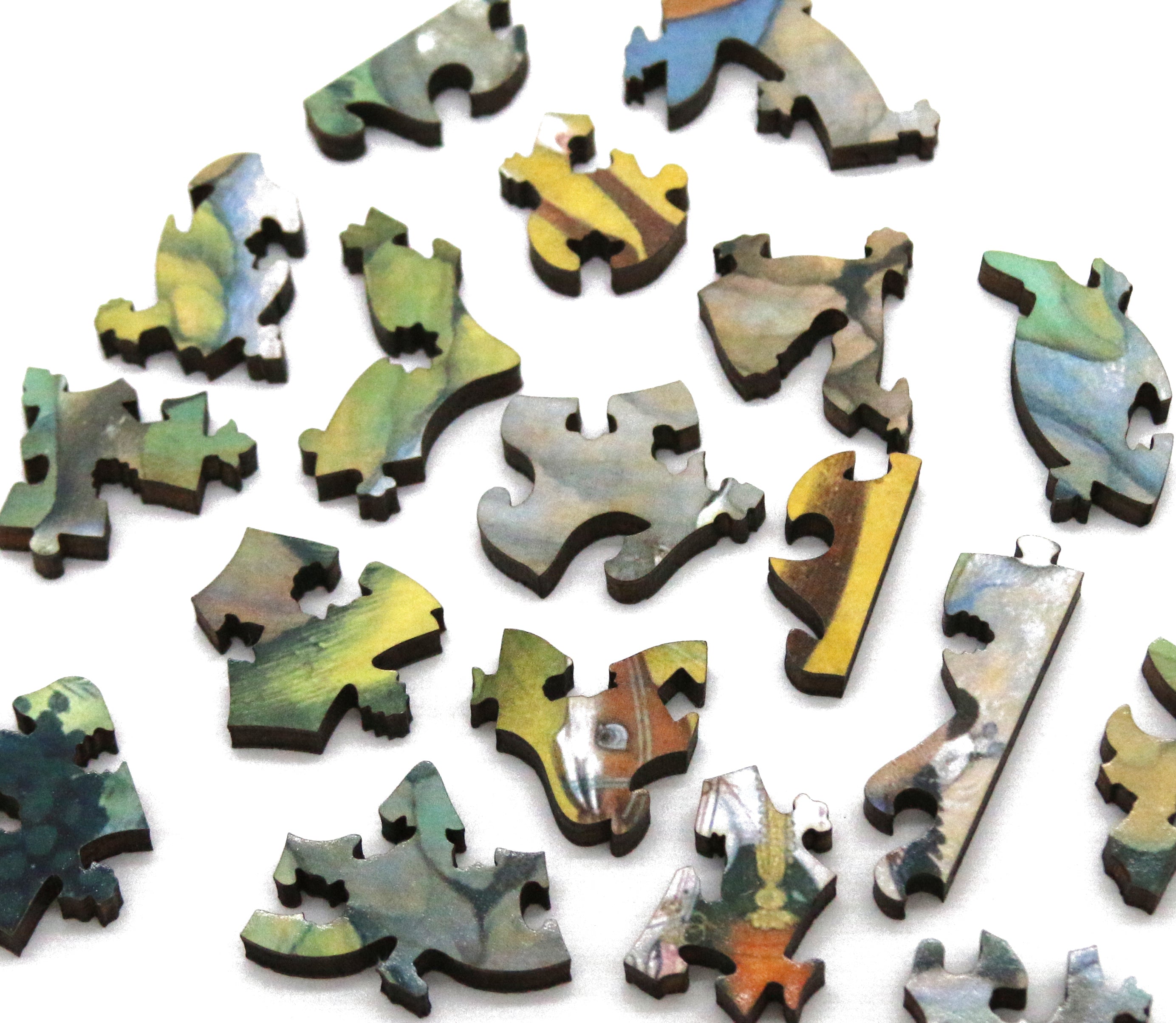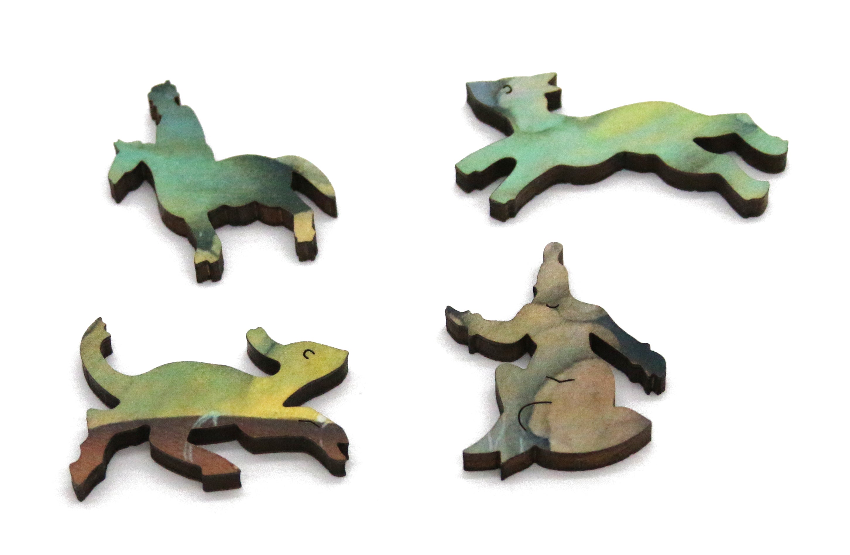 Review: Beautiful art and so bright and colorful! The animals in the art are wonderfully posed as are the animal whimsies, including many multiple piece whimsies! Subtle color hue changes, the somewhat "fake-you-out" side pieces and the many styled connectors make this a challenging puzzle.