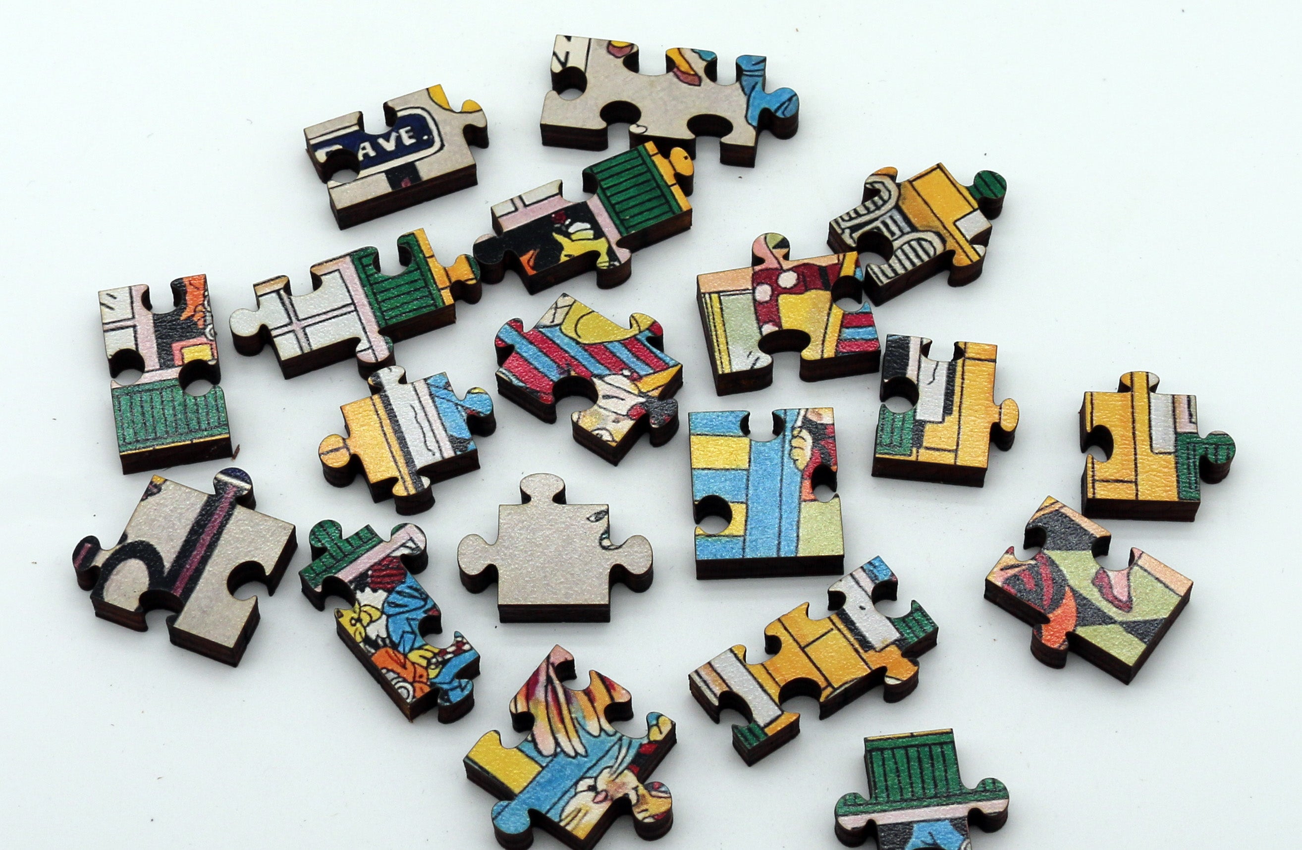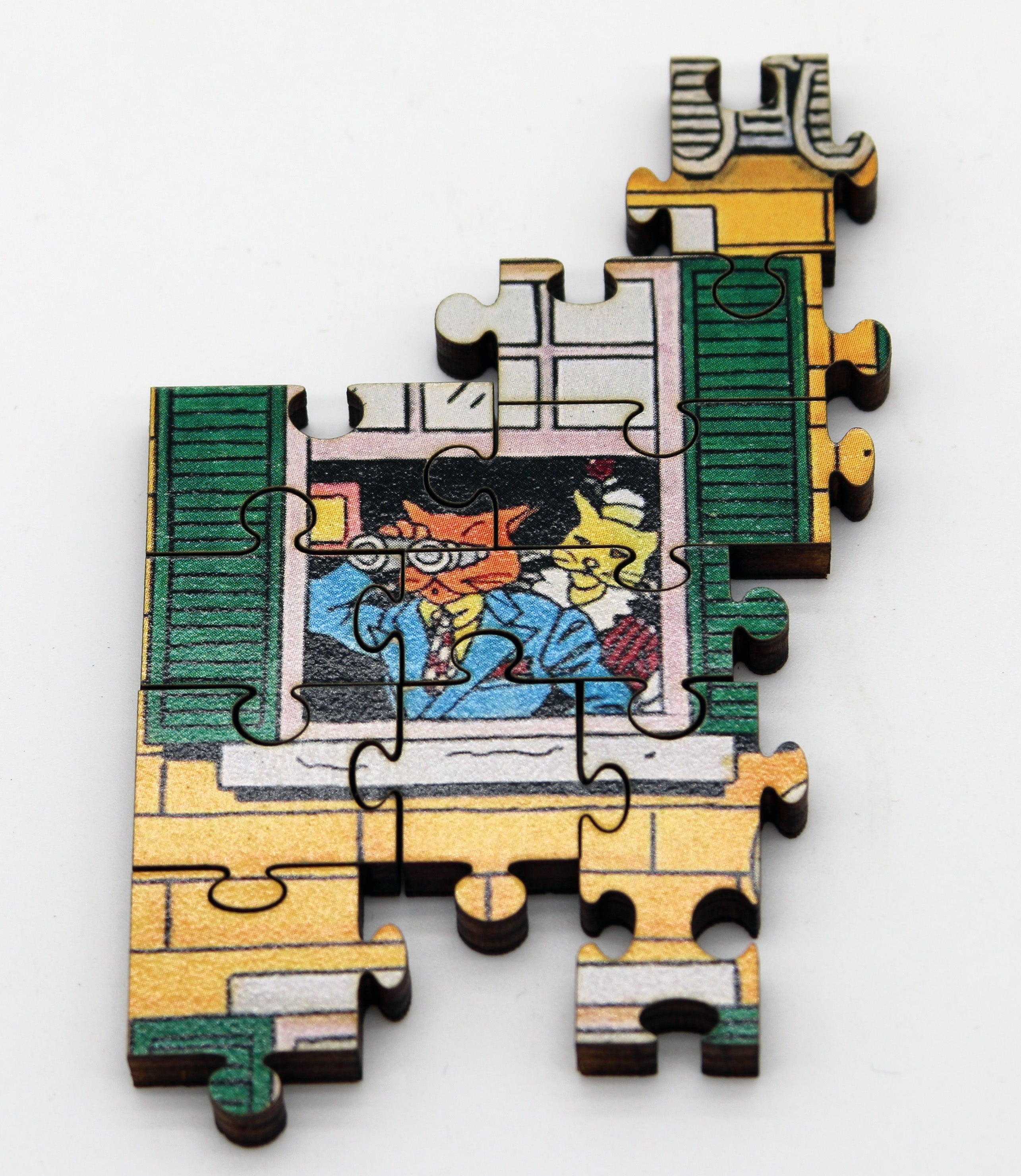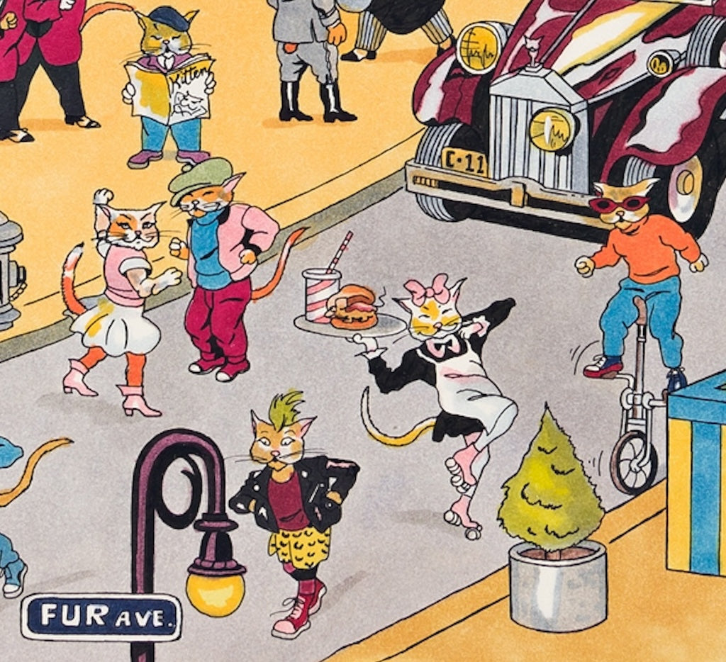This is Nicky Zann's 1984 Cat City as a 348 piece wooden jigsaw puzzle.