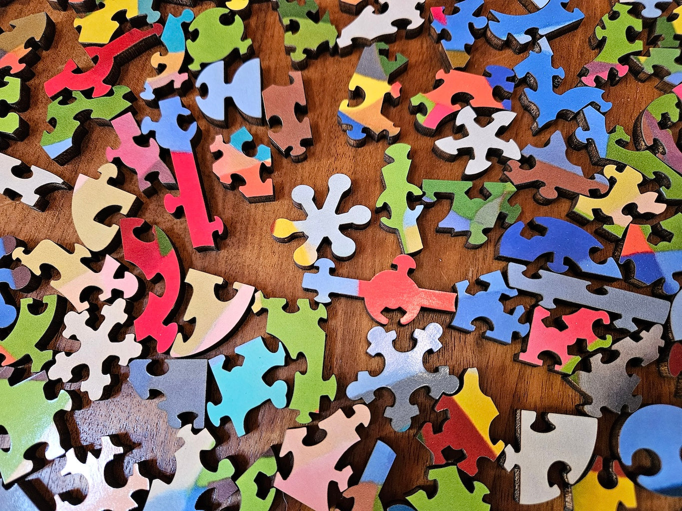 Review: Bright colors and interesting piece shapes really drew us in and sure we stayed-up late puzzling on this one til it was done, so it went really fast, but this is one we'll pull out often to do with friends and loan-out as it's so easy and fun.