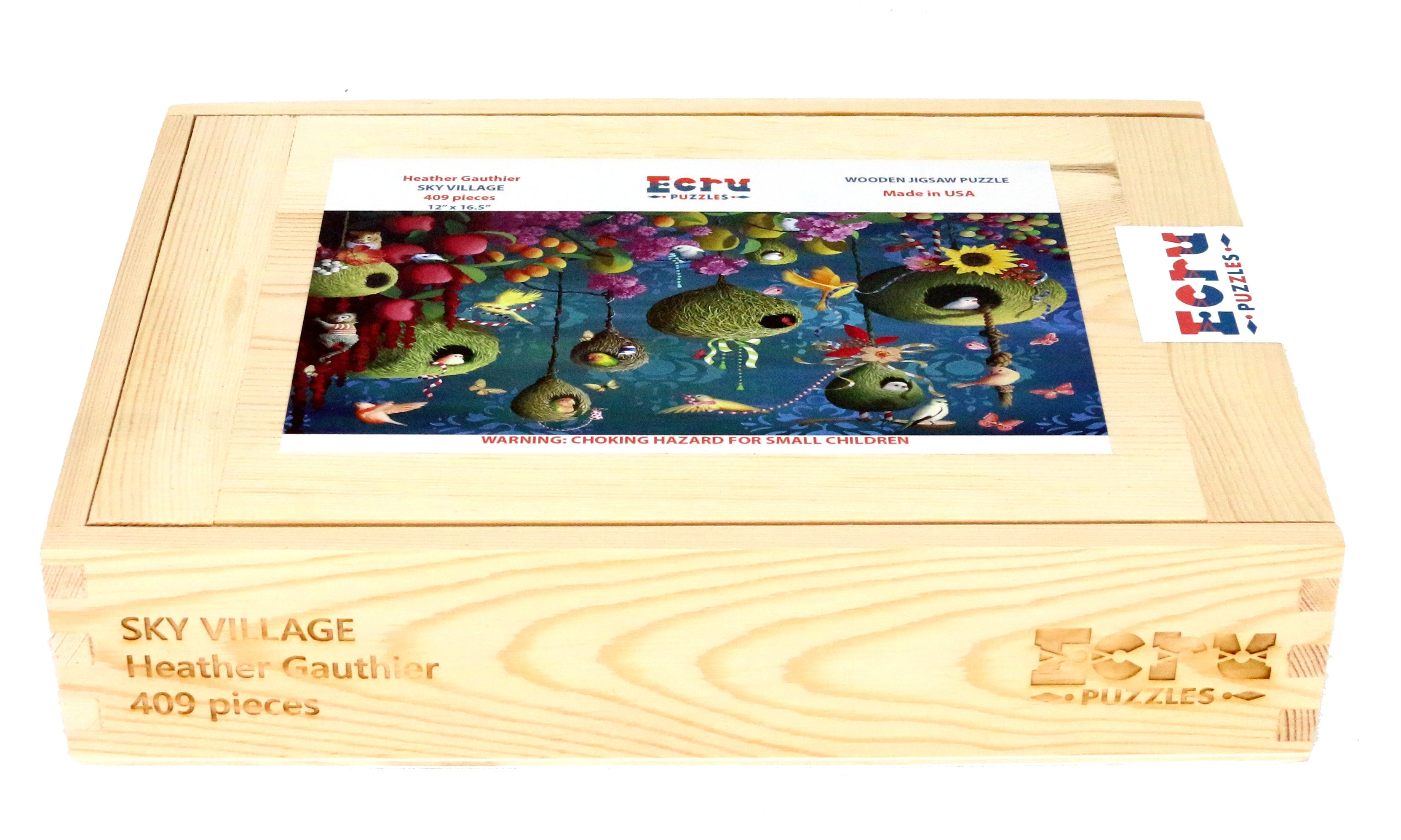 Ecru Puzzles - Heather Gauthier Sky Village Wooden Jigsaw Puzzle