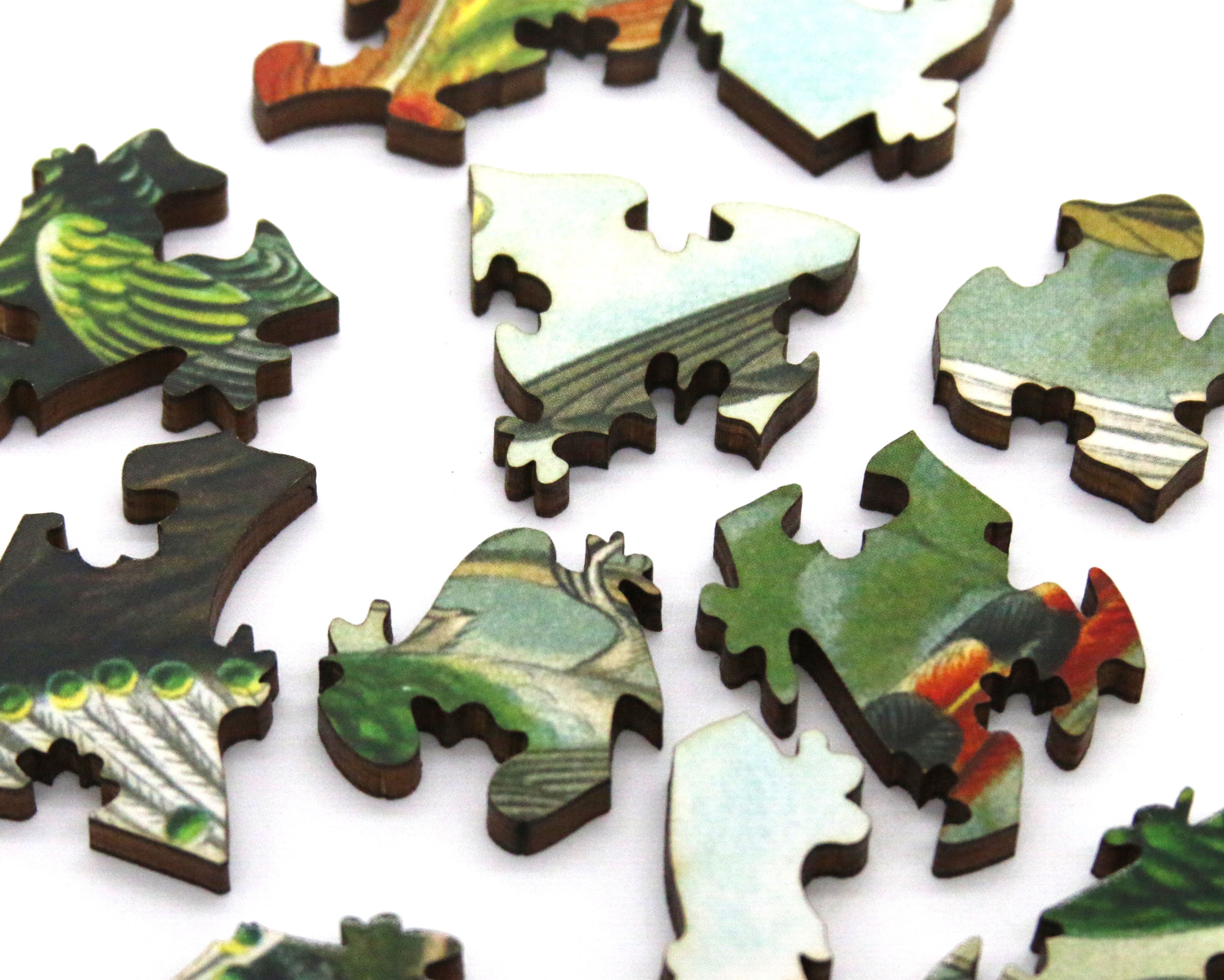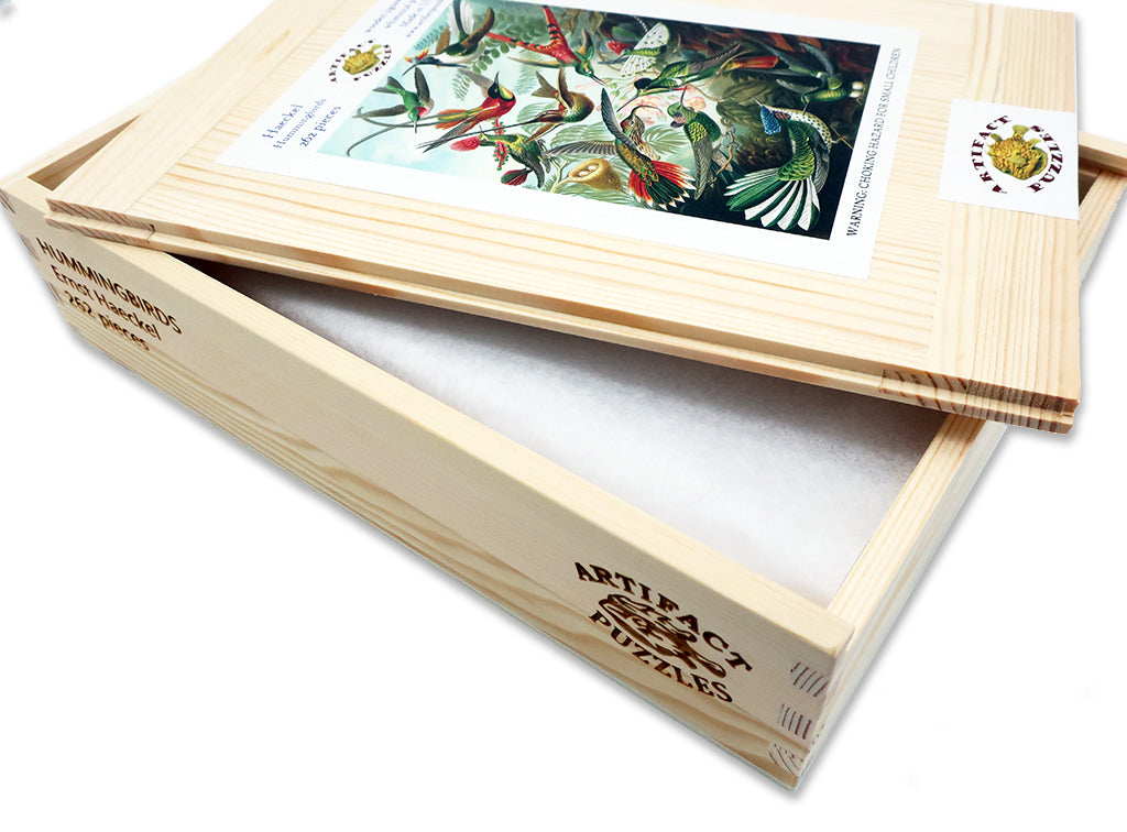 We present naturalist Ernst Haeckel's 1899 illustration of 12 hummingbird species as a 262 piece wooden jigsaw puzzle.