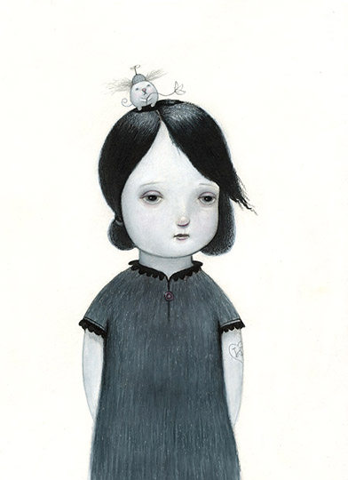 Q: Your artwork has evolved a bit from more interesting-angsty to more cute-beautiful over the last 10 years, what's been driving that change, and how much of your choice of subject is commission-driven (like this painting) vs "I need to paint this"?