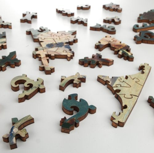 Review: This is a gem of a puzzle. The art can stand on it's own. What the design of the cut and the quality of the materials adds to the beauty of this puzzle makes doing it a very special treat.